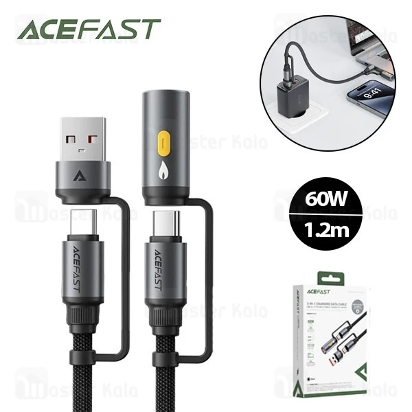کابل Type-C به Type-C چندکاره ایس فست ACEFAST J6 Acewire Pro طول 1.2 متر توان 60 وات