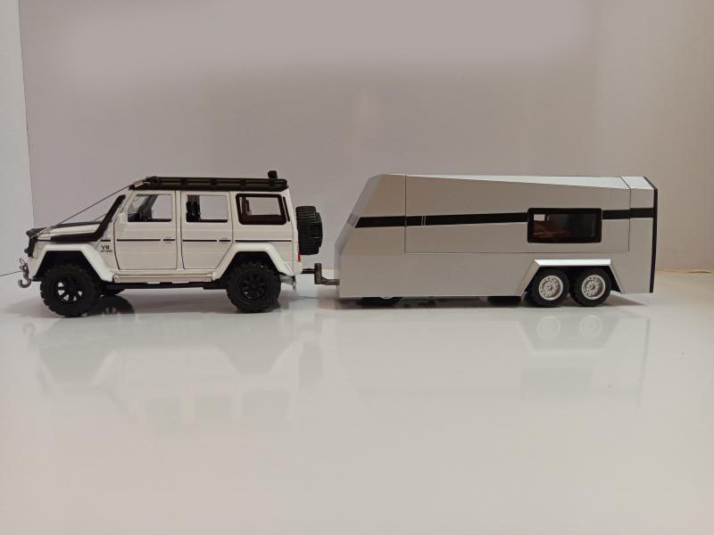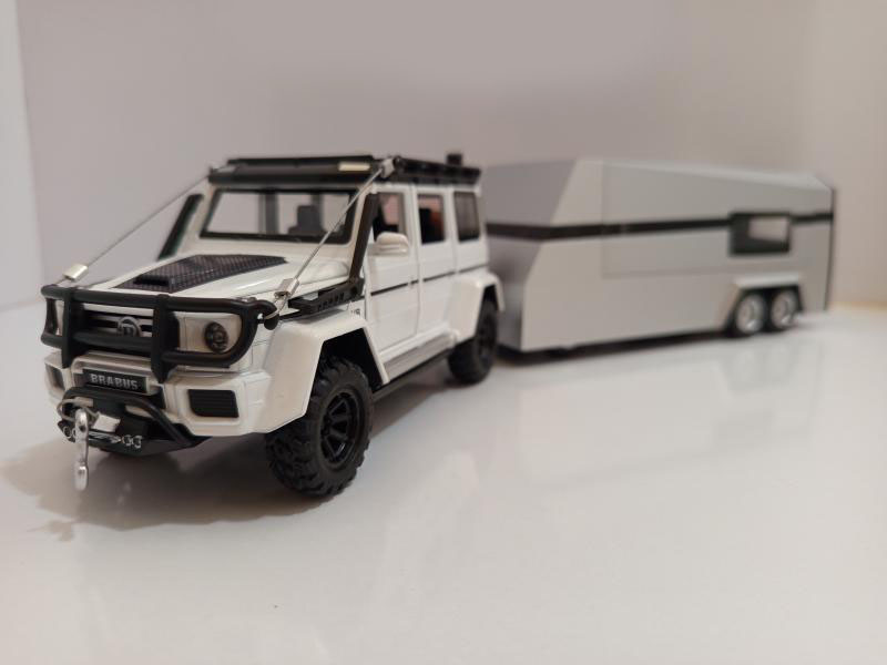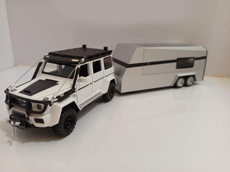 ماکت فلزی بنز برابوس با کاروان (1:32) برند XHO سفید