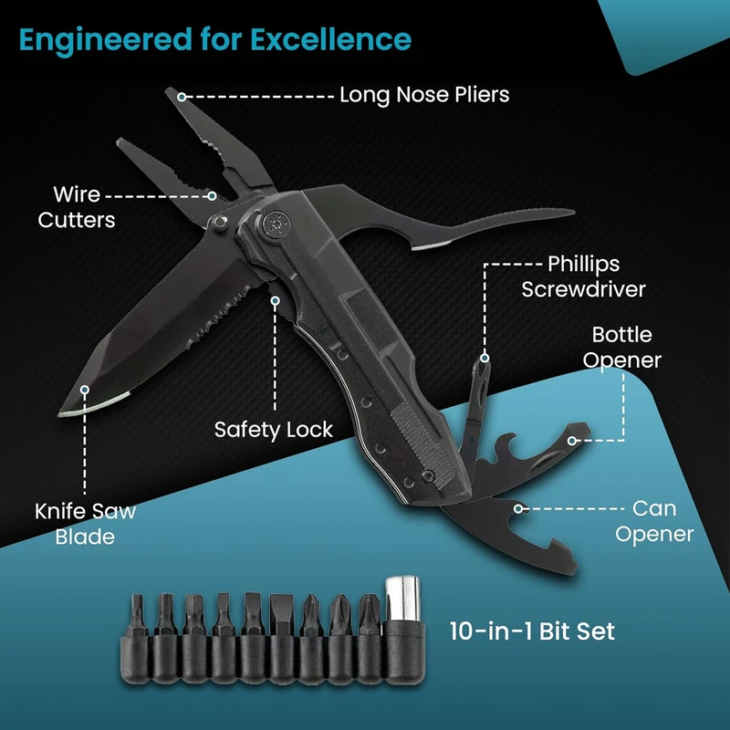 🛠️ ابزار ۱۰ کاره کمپینگ گرین لاین – قدرت در دستان شما!با Green Lion Multi-Pliers GNMLTPLR10BK هر ماجراجویی را با اطمینان آغاز کنید. این ابزار حرفهای و جمعوجور با طراحی ارگونومیک و جنس مقاوم، ۱۰ عملکرد ضروری را در یک بدنه سبک ارائه میدهد.🔹 ویژگیهای کلیدی:– تیغه چاقو تیز و بادوام برای برش سریع– ارهی کاربردی برای چوب و شاخه– انبردست نوکسوزنی و انبردست استاندارد– دربازکن بطری و قوطی– مجموعه پیچگوشتی ۹ بیتی– اهرم چندمنظوره برای کارهای فنیاین ابزار کوچک اما قدرتمند، انتخابی ایدهآل برای کمپینگ، سفر، طبیعتگردی و استفاده روزمره است. با ابعاد کم، بهراحتی در کیف یا جیب شما جای میگیرد و همیشه آمادهی کمک است.🎒 همراهی مطمئن در هر موقعیت –ابزار ۱۰ کاره گرین لاین، همهچیز را برای راحتی و امنیت شما در دل طبیعت فراهم میکند.