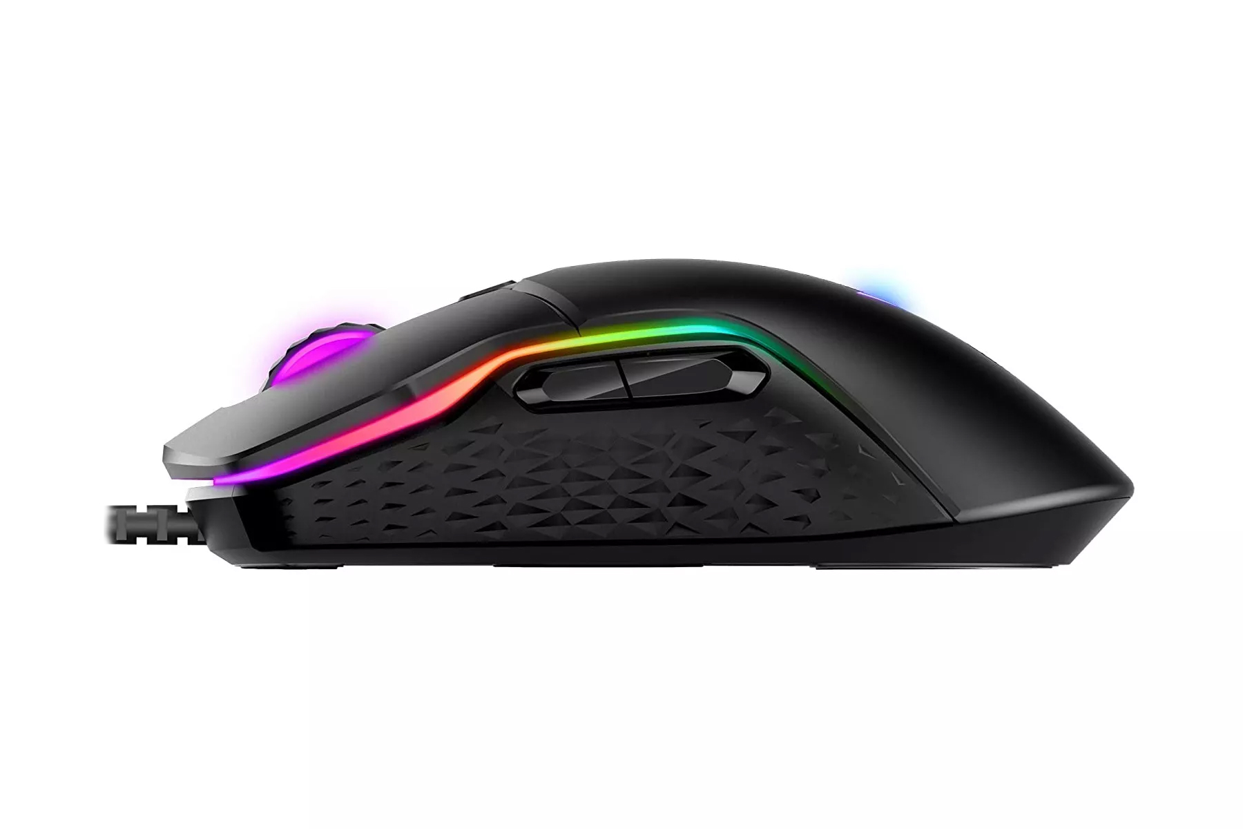 ماوس گیمینگ رپو مدل VT200قدرت، دقت و هیجان در دستان شما .ماوس گیمینگ Rapoo VT200 انتخابی حرفهای برای گیمرهایی است که به دقت، سرعت و کنترل بینقص اهمیت میدهند. طراحی ارگونومیک و نورپردازی RGB پویا، حس حضور در میدان نبرد را زنده میکند. این موس باسیم با ۸ دکمه قابل برنامهریزی و دوام ۶۰ میلیون کلیک، آزادی عمل کامل در اجرای دستورات را فراهم میسازد. فناوری APM شدت و رنگ نور را با سرعت کلیک شما هماهنگ میکند و تجربهای تعاملی خلق میکند. نرخ پاسخدهی ۱۰۰۰ هرتز حرکات را بدون حتی یک لحظه تأخیر منتقل میکند و حافظه داخلی اختصاصی تنظیمات شخصی شما را همیشه در دسترس نگه میدارد. اگر به دنبال ترکیبی از عملکرد حرفهای، طراحی جذاب و حس کنترل مطلق هستید، VT200 همان سلاحی است که برای پیروزی در هر رقابت به آن نیاز دارید.