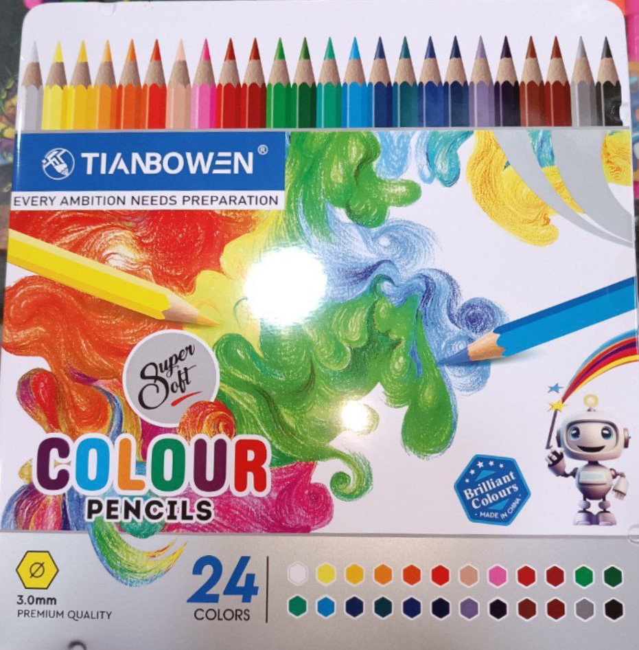 مداد رنگی ۲۴ رنگ Tian Bowen اورجینال – الهام از رنگ، خلق با کیفیت!با مداد رنگی ۲۴ عددی Tian Bowen اورجینال، رنگها را زنده کنید و ایدههای خود را به واقعیت تبدیل نمایید. این مجموعه با جعبه فلزی محکم و طراحی حرفهای، انتخابی عالی برای هنرمندان، دانشآموزان و طراحان است.ویژگیهای کلیدی:شامل ۲۴ رنگ درخشان و متنوع برای طراحی، نقاشی و رنگآمیزی دقیقنوک نرم و مقاوم در برابر شکستگی برای خطوط یکدست و روانکیفیت اورجینال و رنگدانههای غنی با ماندگاری بالابستهبندی فلزی زیبا و بادوام، مناسب برای نگهداری یا هدیهاین مداد رنگیها تعادل بینظیری از کیفیت، زیبایی و دوام را فراهم میکنند. هر رنگ، لمس لطیفی از خلاقیت است که اثر شما را خاصتر میسازد. همین حالا این ست اورجینال Tian Bowen را تهیه کنید و دنیای رنگها را در دستان خود احساس کنید!